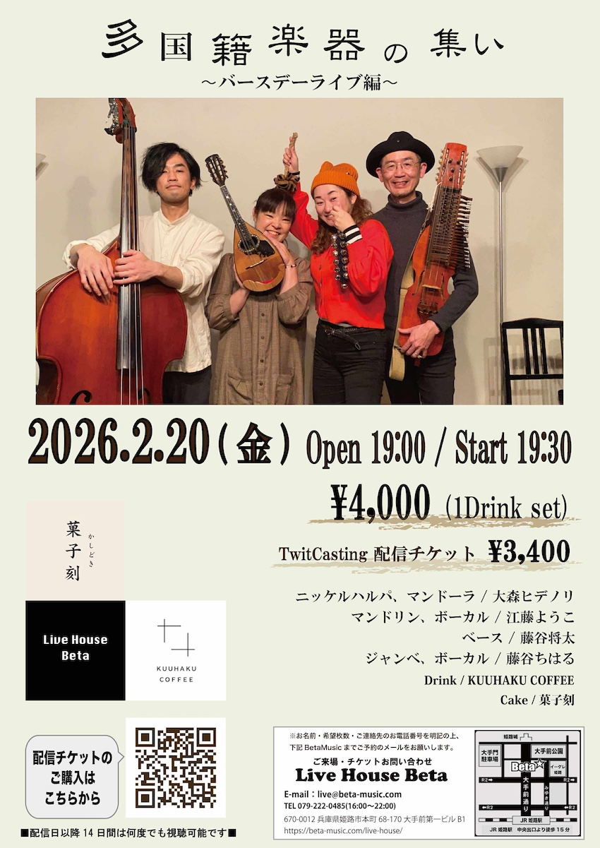江藤ようこ さん、藤谷ちはる さんのバースデーをお祝いするライブです。美味しいコーヒーとお菓子とともにお楽しみください。ツイキャス配信もございます。