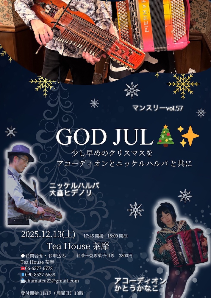 12/13(土)大阪 天神橋 Tea House 茶摩 マンスリーvol.57 GOD JUL